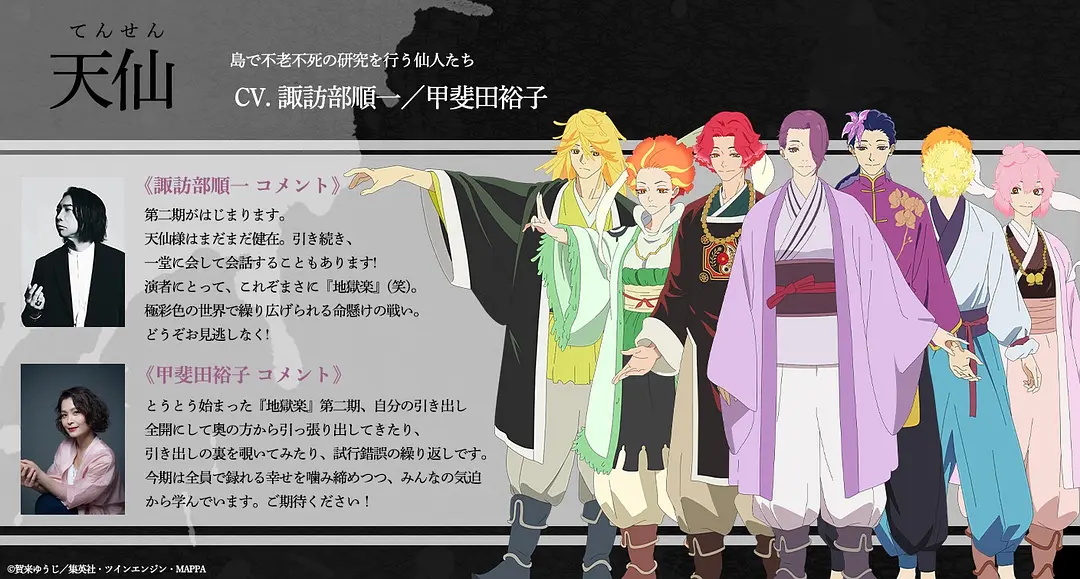 为求仙药线索,一行人抵达统治岛屿的怪物"天仙"之居城。 欲从岛屿生还,死囚与处刑人已不得不携手合作。 与此同时,幕府以"山田浅卫门殊现"为首,下令增派人员登陆神仙乡。 其中竟可见与画眉丸素有渊源的石隐众之身影。 正当画眉丸等人欲尽快寻得仙药逃离孤岛之际,天仙们却拦住了他们的去路—— 围绕仙药的争夺,即将迎来"人类"与"天仙"的全面对决——!!